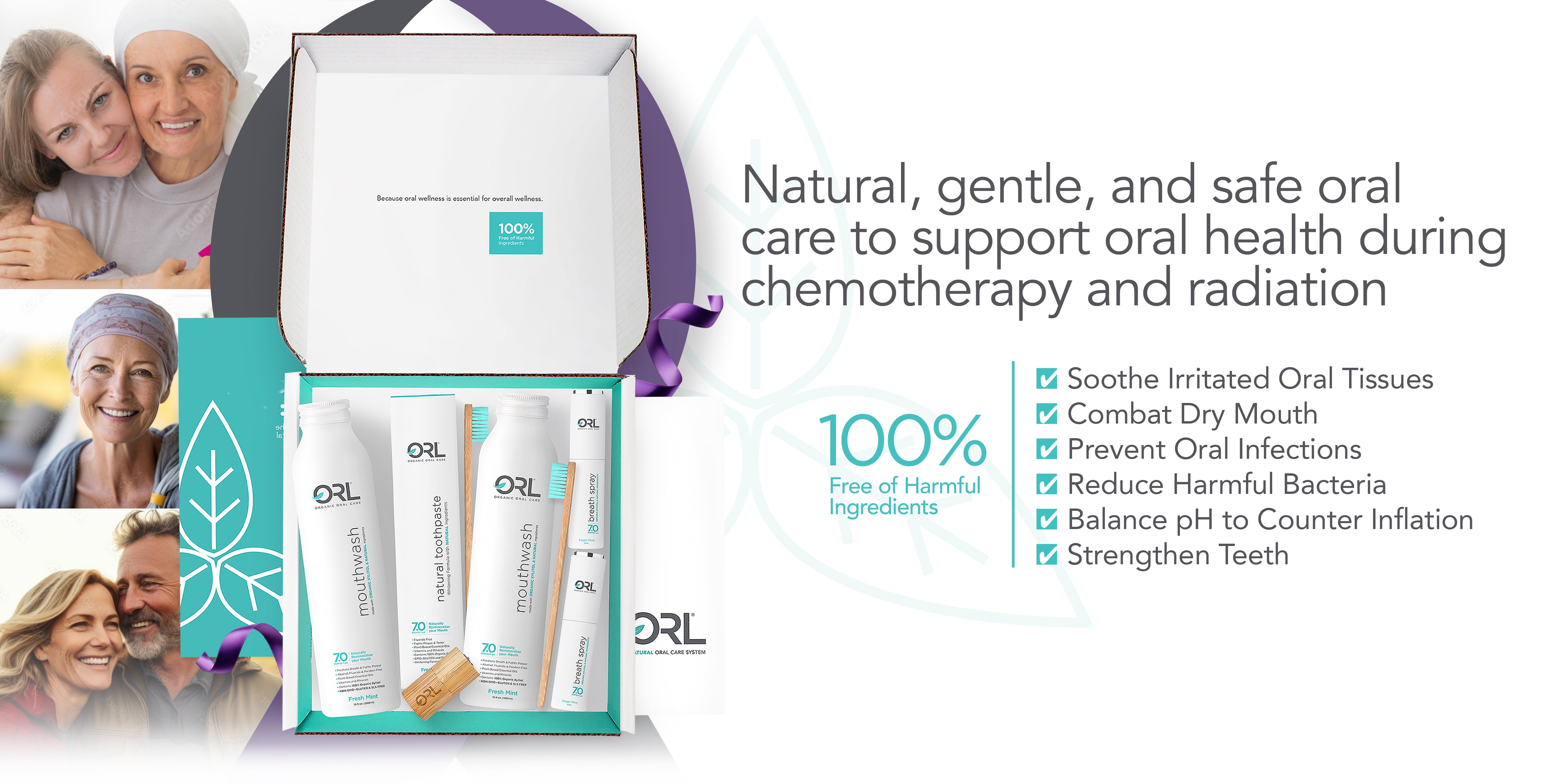 Chemotherapy and radiation often make the mouth more sensitive, and harsh chemicals or alcohol-based mouthwashes can further irritate the oral tissues. ORL’s natural oral care products avoid these harsh ingredients and instead use natural, soothing components that can be less irritating for compromised oral tissues.